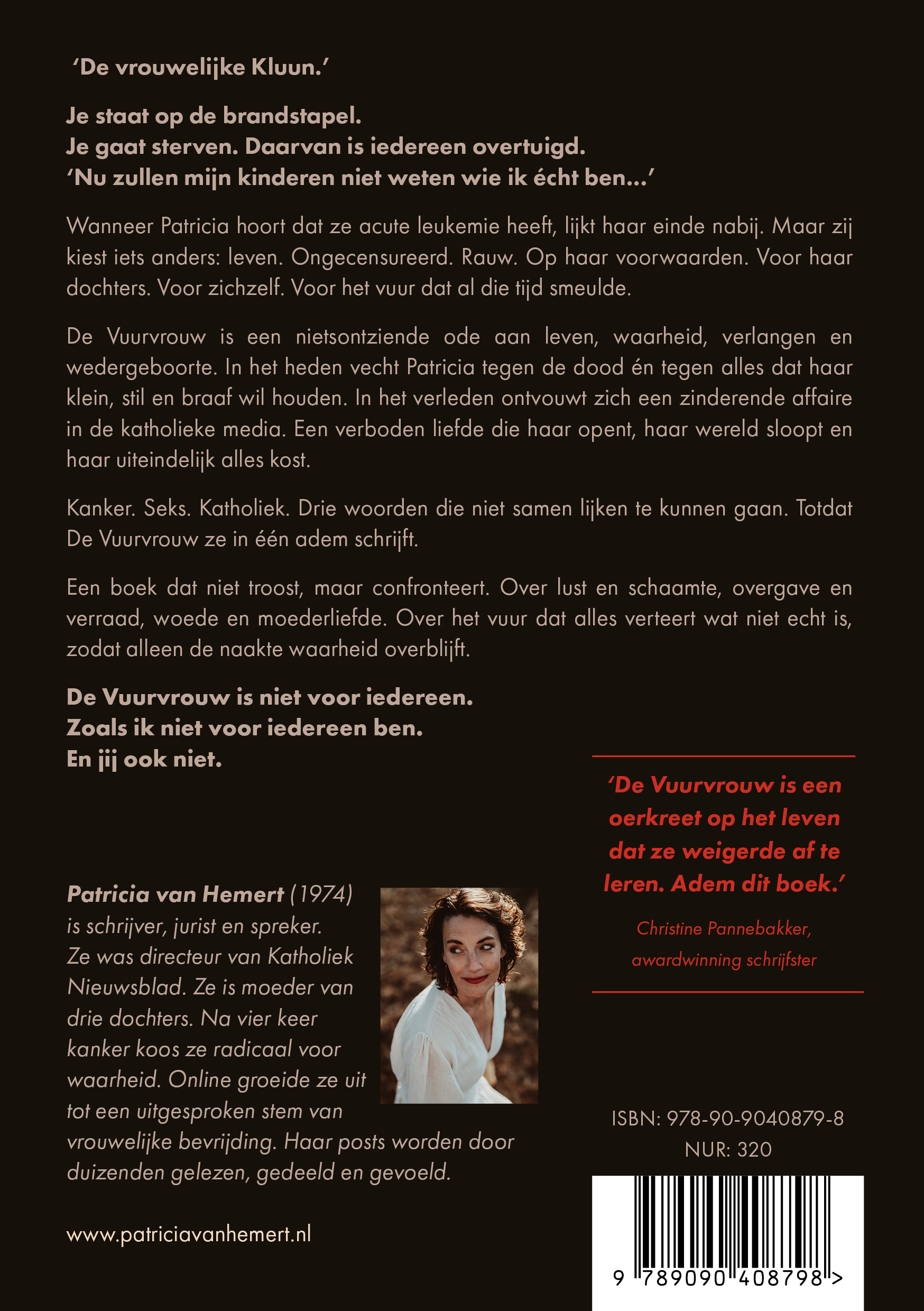De Vuurvrouw is geen boek over ziekte. Het is een boek over mens-zijn. Over vallen, verbranden, herboren worden. Over waarheid, liefde, en de kracht om jezelf opnieuw te ontmoeten, zonder masker, zonder moeten.